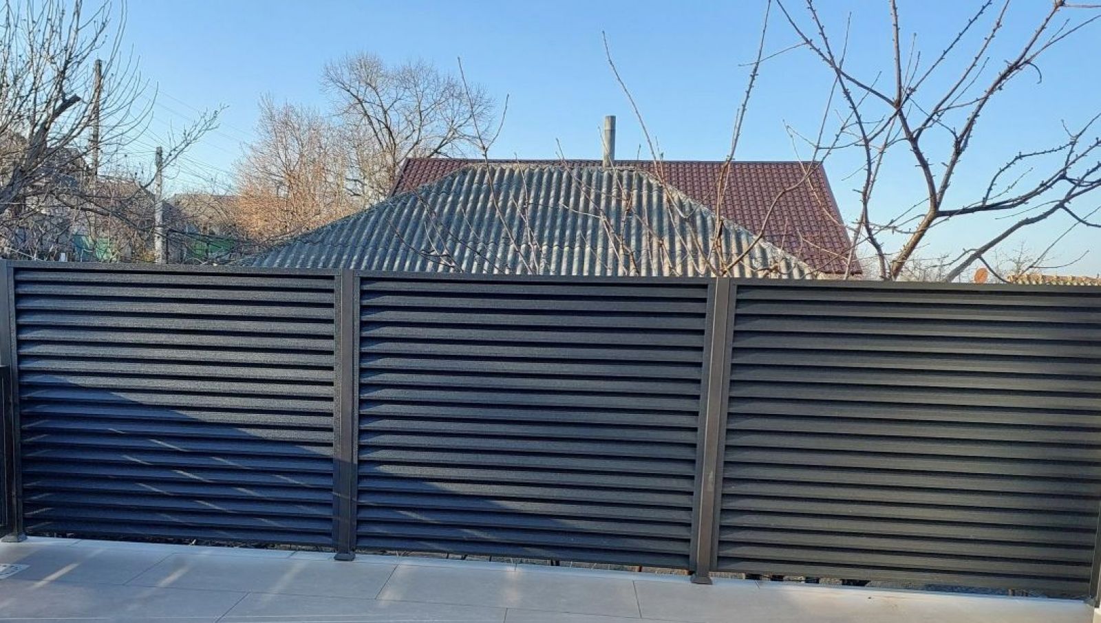 Aceasta este deja o clasică. O foaie metalică profilată, cu nervuri de rigidizare, care oferă protecție completă: împotriva privirilor, zgomotului și vântului. Se montează rapid și are o durată lungă de viață.