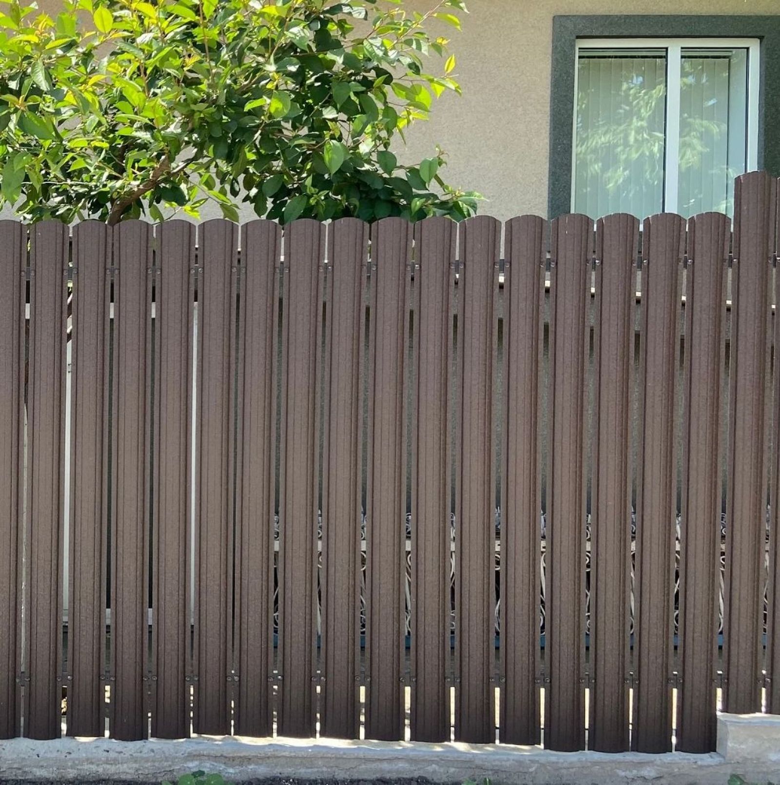 Oferă intimitate și siguranță, închizând complet curtea față de exterior. Se pot combina diferite culori – de la maro la roșu-vin – iar aspectul sobru poate fi ușor echilibrat cu elemente decorative: stâlpi din cărămidă, fier forjat sau porți în stil „lemn”.